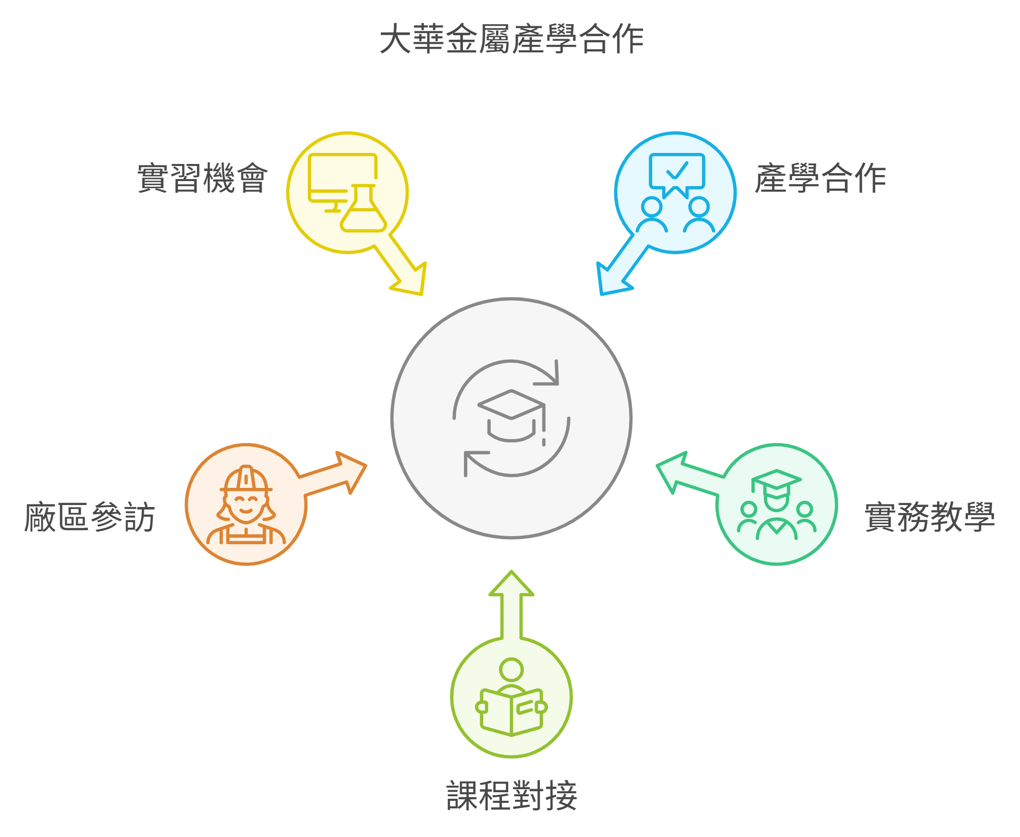 在人才培育方面,大華金屬積極與大專院校建立深度合作關係,透過共同執行計畫及協同授課等方式推廣實務教學。本公司以業界導師的角色,結合課程需求投入教學工作,運用豐富的實務經驗傳授相關專業知識,有效縮短學用落差,提升學生的就業競爭力。