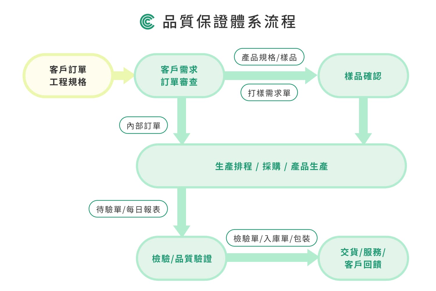 大華金屬深知信任與滿意皆奠基於優良的產品品質,因此,本公司致力於提升品質管理水平。透過完善的品質保證流程,與相關部門共同制定並實施內部產品研發相關的流程與政策,以進一步確保產品品質的穩定。同時制定相關作業辦法以達成前述目標,包括:成品材料儲存搬運辦法、訂購作業辦法以及協力廠商評鑑辦法……等。此外,本公司秉持嚴格的原材料採購標準、生產過程監控和產品檢驗測試等環節,以確保產品品質達到最高標準。通過這些嚴謹的品質保證措施,大華金屬不僅能夠提高生產效率和降低不良品率,還可以維持市場競爭力,同時獲得客戶的支持。此外,本公司持續進行技術創新和人才培養,以不斷提升產品性能,滿足不同客戶群的需求,嘗試在產業中保持領先地位。本公司於推動ISO 9001:2015 品質管理系統同時輔以 6S、標準化、教育訓練等活動,以達到健全公司運作、增強公司體質,改善產品品質,提昇競爭能力。公司內部鼓勵進行持續改進,藉以不斷優化品質管理流程,針對現有流程也會進行定期審核,根據審核結果進行調整和改進,以PDCA循環式品質管理模式達成完善的產品品質控管機制。
