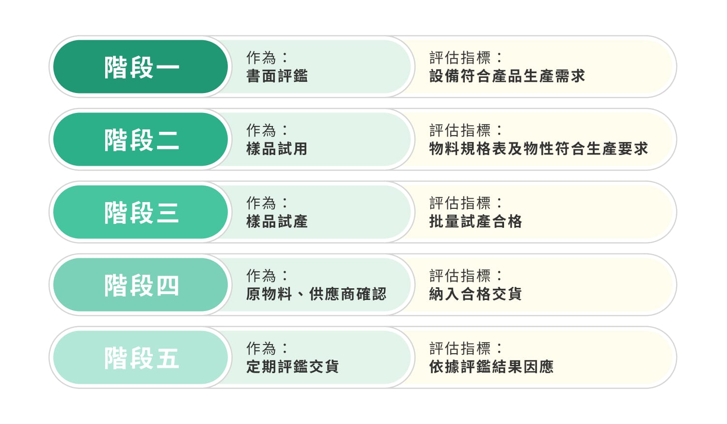 大華金屬為強化創新研發能力,各產品線除了研發技術提升及設備產能、效率不斷的突破,也持續在在地採購、綠色採購上持續展現本公司的作為與行動。在短期目標上,大華金屬將致力維持供應商交貨品質、交期、數量以確保符合生產需求,使得產品價格具競爭力;中期並將開發新供應商,持續確保第二供應來源穩定;長期則將配合公司政策之節能減碳、永續經營之方針,開發具有循環效益之設備,以及與供應商進行合作策略推動。